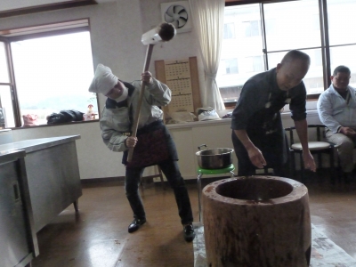 メンバーとスタッフが代わる代わる餅をつき、一升餅が出来上がりました。