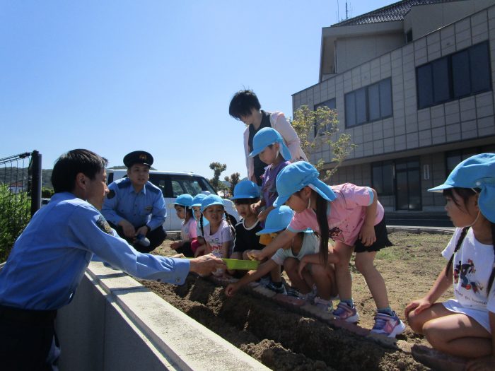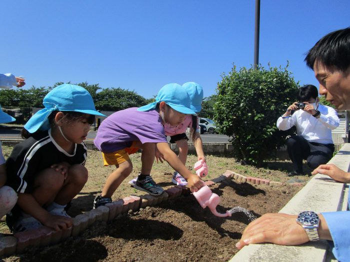 水やりした後は、署長さんと「おおきくなぁれ!」と願いを込めて、種に声かけをする子ども達でした😝