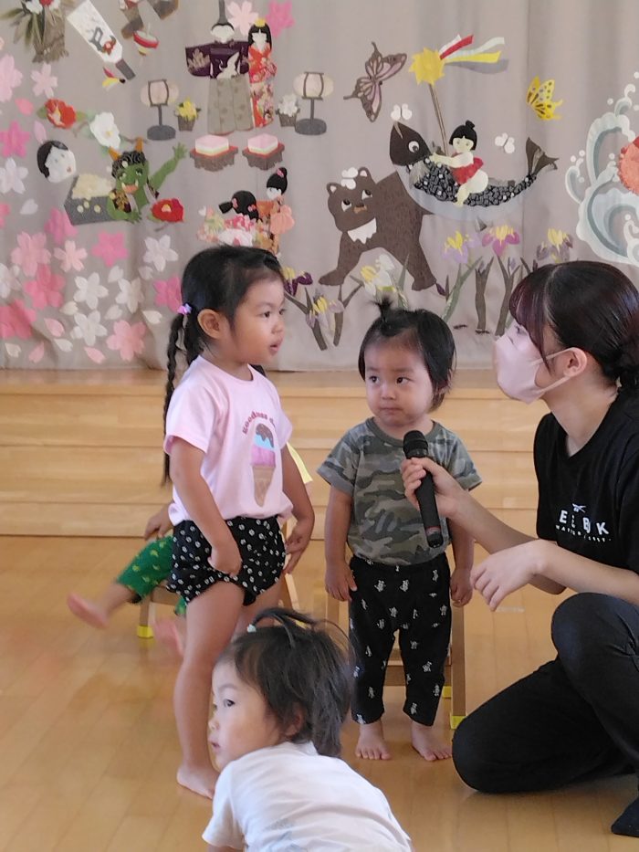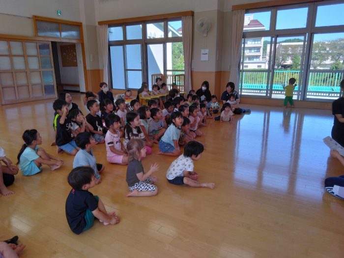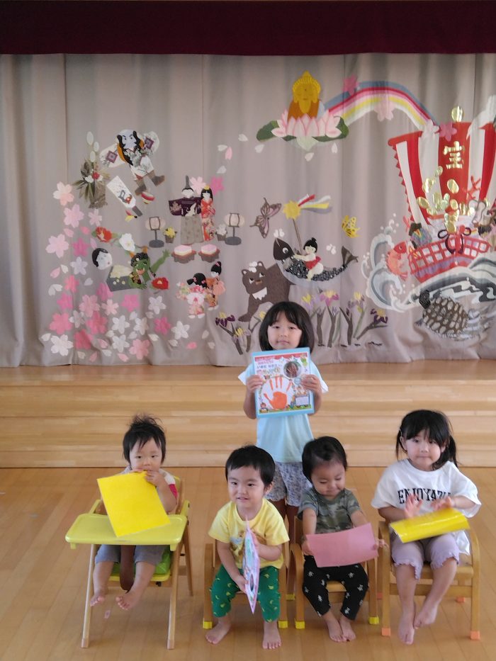 保育士の出し物、ペープサートをみんなで見て、楽しい誕生会となりました⭐