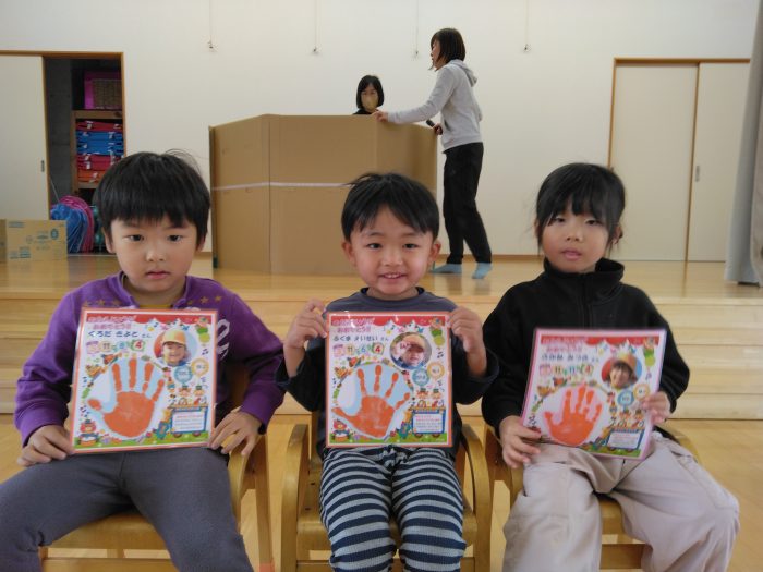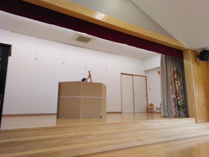 ダンボールの壁から投げられるものを、みんな、しっかり見つめ答えていましたよ😁