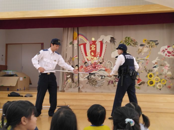 今日は園児たちの安全を守るために大切な『不審者対応訓練』を実施しました。