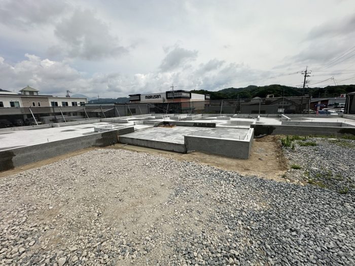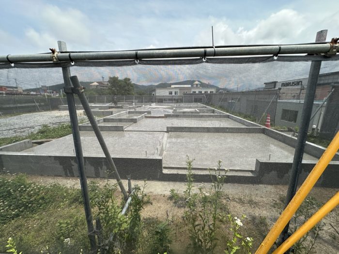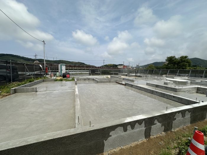 ふぁみりーわーくの工事は、玄関前のポーチ部分のコンクリートも出来上がり、基礎工事部分が完了しました。
