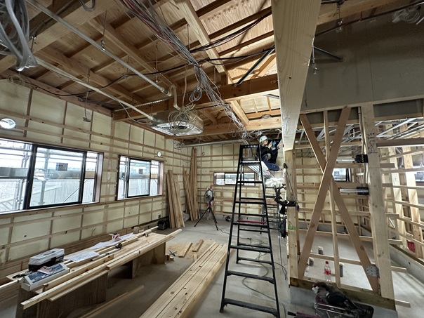 今週は、外壁がサイディング工事が行われました。まだ、目地等は埋められていませんが、きれいに出来上がっています。