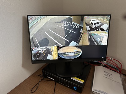 事務室にレコーダを設置し、5台のカメラで全方向を見ることが出来ます。